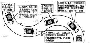 技巧:不管先是左弯还是右弯,方法一样,以先左后右为例:车入道口,当右边线慢慢靠近车头,盖住车头一半时,迅速向左打一圈,然后观察左车头角,左车头角沿着右道钉边线走,别让它超过,要超过了就再往左打一点方向,离得远了就回一点方向。(原理:车头离开道钉近右轮就离开道钉远;反之,车头离开道钉远,后轮就要压了)。