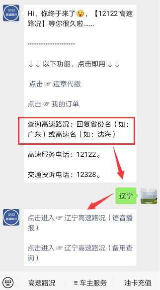 微信搜索公众号:【12122高速路况】,关注成功后,在对话框回复:辽宁,即可获取辽宁高速路况官方直播入口或备用查询入口。