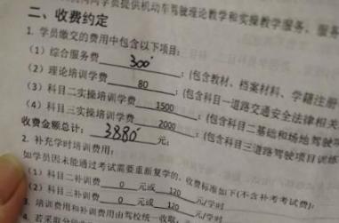 以C2(自动挡)为例,去年报名费是4380元(包含考试费,不含补考费),科目二补考费400元/次,科目三补考费500元/次,科目二补考一次花费400元,科目三补考3次花费1500元。