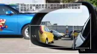 左、右位置调整至镜面的左侧边缘,切至自己在镜中影像的右耳际,一般情况下,所以说中央后视镜是不易看到自己的,要先把上下位置的远处的地平线调到镜面中间。调整过程:要把水平线摆在中间,左右位置放耳际,成远方的水平线横置于后视镜中线位置,在慢慢往左右移动,然后把右耳的影像调到镜面的左侧。