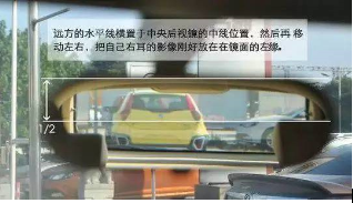 上、下位置是把远处的地平线置于中央,左、右位置则调整至车身占据镜面范围的1/4。