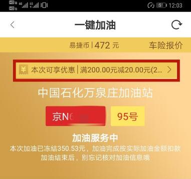 而且它也会经常有一些优惠券,能帮小伙伴们省一些钱。以上图为例,加200元的油就能省20元,不过这个优惠也是不定期的,每次优惠的标准可能不同。