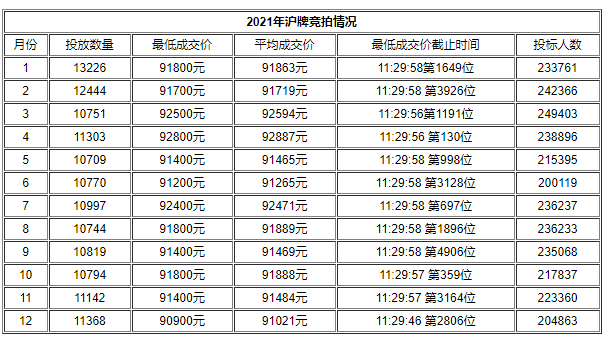 上海车牌最新价格一览表2021