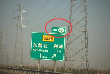 来源:驾照吧 发布:2018-12-18在高速公路上,一般距离出口3km左右时会有出口信息提示,如图所示,该图片的信息有,距离东营北,利津出口还有1km,东营北与利津是两个相反方向的地名,下高速之后的道路为省道228,右上角的编号相信大家应该不陌生,但是代表什么含义可能不知道,出口484,代表该出口为该高速公路的第484个出口。