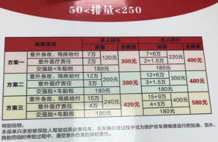 除此以外,也有人自己提前购买保险,之后再到摩托车店里进行挂牌。交强险是必须买的,意外险也要买,200cc排量的保险费一共为240元,再加上车船税费一共275元。