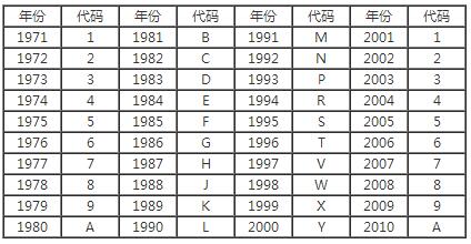 (1)车辆指示部分第一位率码应指示年份,年份代码按表1规定使用。