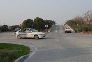 经验之一:一挡通过,不加油门。驶入考场时尽量紧贴右侧路牙。正前方的路牙一旦被引擎盖挡住视线,就要向左猛打方向,直至打到底。看到车头对准出口,就迅速将方向回正。