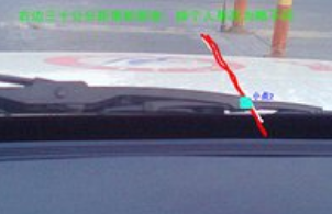 第七种方法:这个方法比较适用于普桑,左边刮水器上的螺丝对准白线区域,喷水点对准考试区域偏右的位置。