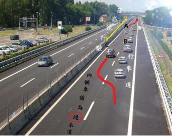 根据高速公路的限制速度来确定超车道,但必须从前车的左侧道路进行超车。