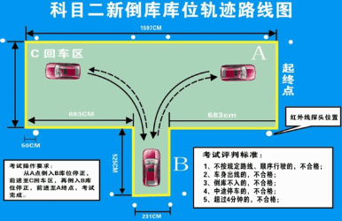 7.考试顺序:倒车入库---侧方位停车--坡道定点---直角转弯---曲线行驶---结束后将车开回考试起点。