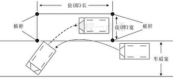 3、倒库入底时看左后视镜,当库前边线出在左后视镜位置时,停车,倒库完成.
