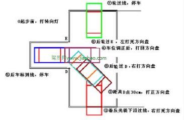 左镜盖住横线角,向右打死方向好。
