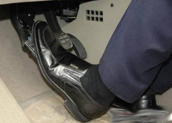 1、以脚跟为支点,将左脚跟放在离合器踏板的正中央,以脚跟为支点上下调整。