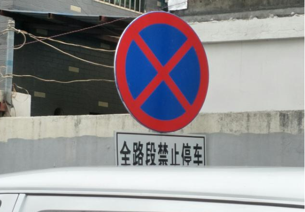 一、禁止停车标志。这种标志一般是一个红叉或者斜杠,有这个标志的路段就不允许停车,而有的路段还会在路边画上黄线,这种也是不能停车的。