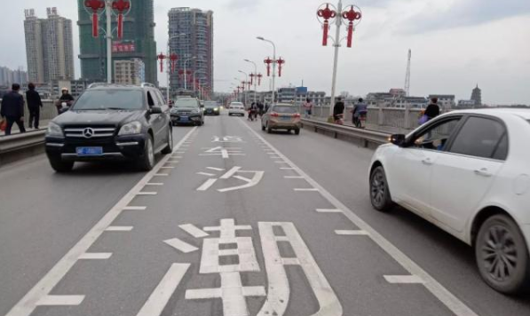 五、潮汐车道。这个车道是在车流量增大之后出现的,以前都没有这个标志。它的形状就是一个锯齿状的车道,但是它的行车方向是按时段变化的。可能早上是右转车道,晚上就变成左转车道,车主在行驶的时候一定要看清。