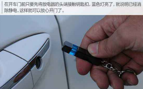 在开车门前,先将除静电钥匙扣按在车门上一会吸收一下静电,就能减少在开车门时被静电电到。
