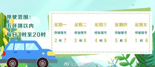 2.工作日9时至17时,需遵守本市尾号限行规定,限行尾号与北京号牌车辆相同,限行范围为五环路主路、辅路及其以内道路。