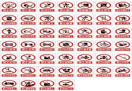 2、禁令标志的颜色,除个别标志外,为白底,红圈,红杠,黑图形,图形压杠。