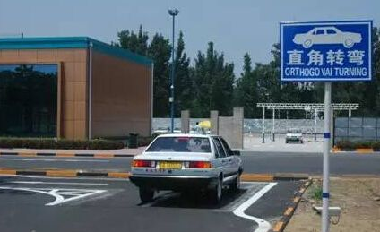 车体沿右侧边线30cm缓慢行走,到达直角考试前段线时,或者考试学员身体与拐角线平行时,迅速打死方向 ,进行左转弯,等车体平行时,迅速回正。在道路上正常行驶。