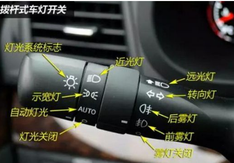 雾灯属于特殊灯种,一般采用穿透力强的光源作为灯光。应用于雾天等可见度低的驾驶条件下,强力的穿透性能够让他人在雾中看到你的车辆。后雾灯为标配,但是现在部分车种并没有配置前雾灯,如果有考试车有前后雾灯,记得分清其图标,或是干脆全部打开。除了旋钮式跟拨杆式的开关,大众车系(包括斯柯达)的雾灯开关比较另类:将旋钮旋至最后一格(大灯)后往上拉动即可打开,这点要注意。