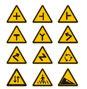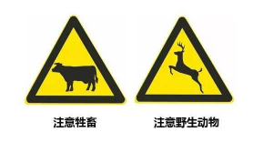 其实大部分蓝底白字的标志大家都能分清,就是很多指示标志的图案和警告标志很像,大家千万要区分开。