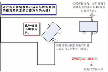 4、当感觉车身正了后,回正方向,调整两边的距离: 哪边宽,往哪边打方向;打了方向,记得回正方向。方向的调整,大家可以想像如果您在骑自行车,倒退时,怎么调整方向,就能想明。