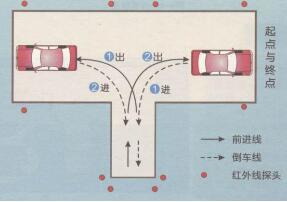 首先说明一下倒车入库考试:由起点倒人车库,然后前进至回车区,再倒人车库,随后出库返回起点,如下图所示。整个考试过程中,应做到不轧线、不熄火、不原地打轮,中途不得停车。
