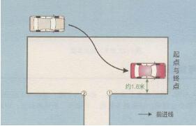 考试前,先将车辆开到车库的起点处。在此过程中,应注意调整车辆位置。到达起点位置时,一定要停正,且最好距车库边线1.6米左右,如下图所示:
