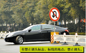 七、有禁止掉头标志、标线的地点,禁止掉头。