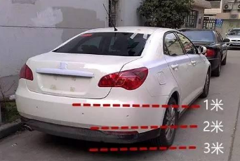 三米:看见前车后轮着地点,车距约为三米。