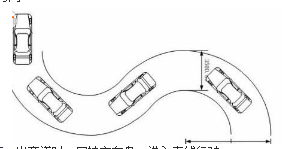 2、进入第一个弯道,车辆沿道路的右侧进入弯道(距左侧路边缘约1米),保持匀低速行驶,向左打方向盘,车辆由靠右侧行驶变为靠左侧行驶。