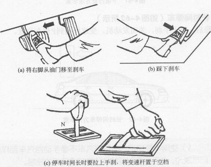 (4)在放下手动刹车瞬间,暂时稳住离合器,并多加点油,以避免车子出现不平稳的现象。