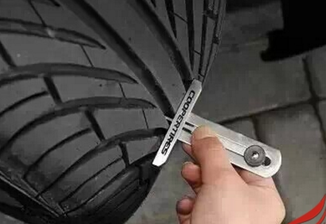 如何才能确定是否需要更换轮胎呢?具体做法是:在轮胎的胎冠面上沿轮胎的圆周五等分(多数国家都是这样)处的花纹沟槽底部,轴向设置一条高1.6mm的凸台。当轮胎花纹磨损到距沟槽底部1.6mm时,这部分的沟槽便开始断裂,因而出现一条清晰的裂纹,从而提醒驾驶员必须更换轮胎。