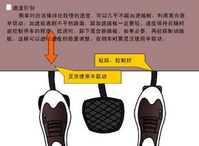 (3)凭脚感。当发动机的声音开始变化,车辆发生轻徽震动的同时,离合器踏板即会有顶脚的感觉产生,这时的离合器正处在半联动状态。
