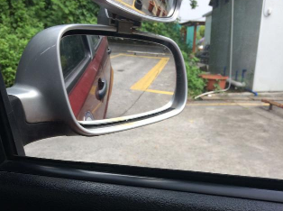 1、保持方向盘不动或稍微向左打到10点钟位置(如车身离库角较远时需继续向左加方向),直至左侧后视镜内直角与车身约3cm时(约两根手指距离),方向盘向右转剩下一圈。