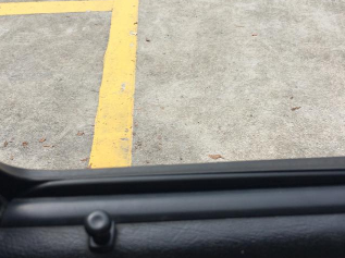 2、当车辆行驶至左边护栏前黄线到达车门把手位置时停车,车头稍微偏左(方向盘保持不动)。