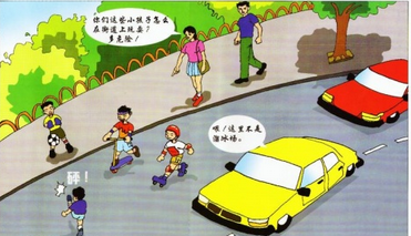 4、不要在马路上打闹、游戏、滑旱冰,容易出危险。