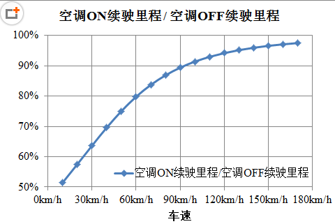 理论上,60km/h匀速时,空调ON行车 续驶里程将下降到空调OFF时的80%。
