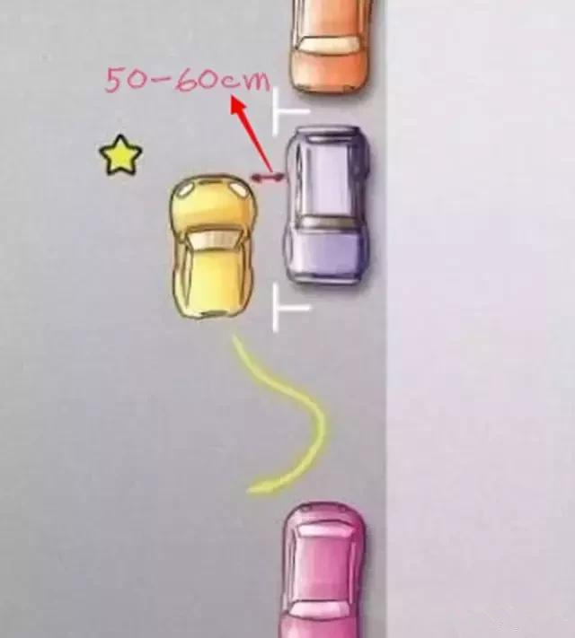 将自己在开车进行入库的时候,要记住自己的车与旁边车的距离在50-60cm左右,然后调整到平齐的位置