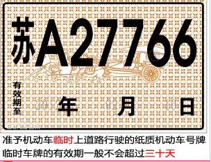 来源:驾照吧 发布:2016-10-09刚买来的新车如果想要上路行驶就需要临时牌照,临时牌照是在我们拿到正式牌照的一个过渡阶段,它的效应和正式牌照是一样的,但是,临时牌照是具有时间效应的,在取得正式牌照的时候,临时牌照就作废了。