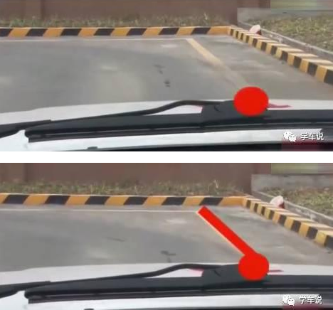 用左雨刷器最高点(凸起点)沿着右边线前行。