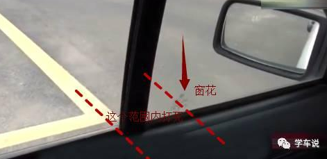 关键点都是在窗花和竖杆之间的某个位置。太早打左前轮会压到拐角或距离拐角太近,太晚打右前轮压外边线或车身容易扫线,也就是说,在这个范围里面打死方向盘就不会压到线的(如图)。