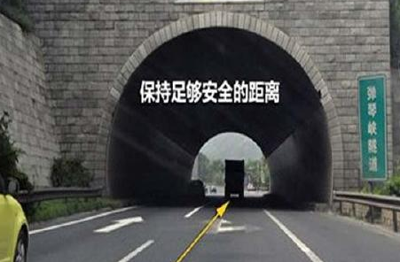 行至隧道入口前约 50米左右,打开前照灯、示宽灯、尾灯,及时察看车速表,根据隧道口标志上规定的速度行车。从洞外进入隧道,人眼的适应时间大约为10秒左右,为弥补这一缺陷必须在进隧道前提前降低车速。如果车速过快,不能及时调整暗适应、明适应的生理过程,无法看清隧道内的前进方向,这样很容易导致交通事故的发生。
