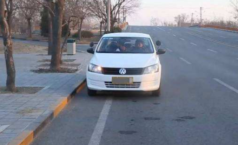 3、观察车头1/3-1/2的位置与路边线(有的是马路牙子)重合,立即向左回正方向,并继续向左打90度左右的方向。