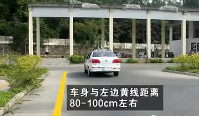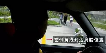 我们接着上面的内容继续说,当车身停正后我们挂上一档向前行驶,这时要观察库的左侧黄线与自己肩膀平行时,迅速向左打死方向盘,出库。
