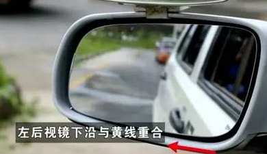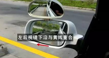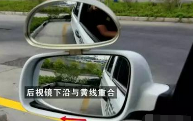 哪侧距离不合适再细微的修正方向。边距没问题后,观察左后视镜的下沿与黄边线重合时停车。