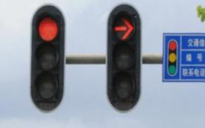 (2)、左转箭头信号灯亮红,圆饼信号灯亮红,右转箭头信号灯全灭,车辆可以右转,无法左转和直行;