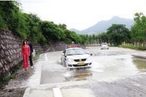 5、在通过有积水的地方或者立交桥下,有水溢满的路面时,要挂低速档,稳住油门,低速前行,一气通过,千万不能中途停车、换挡、或者急转方向,不然导致车辆熄火就不合格了。
