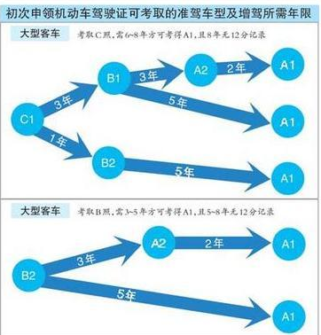 2,持有B2驾驶证,需要满一年后才能增驾B1驾驶证;或满三年后才能增驾A2驾驶证;满五年后才能增驾A1驾驶证。