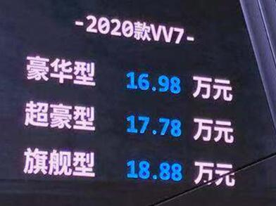 目前新款VV51.5T厂商指导价12.58-14.78万之间,2020款WEY VV7目前厂商指导价16.98-18.88万之间。